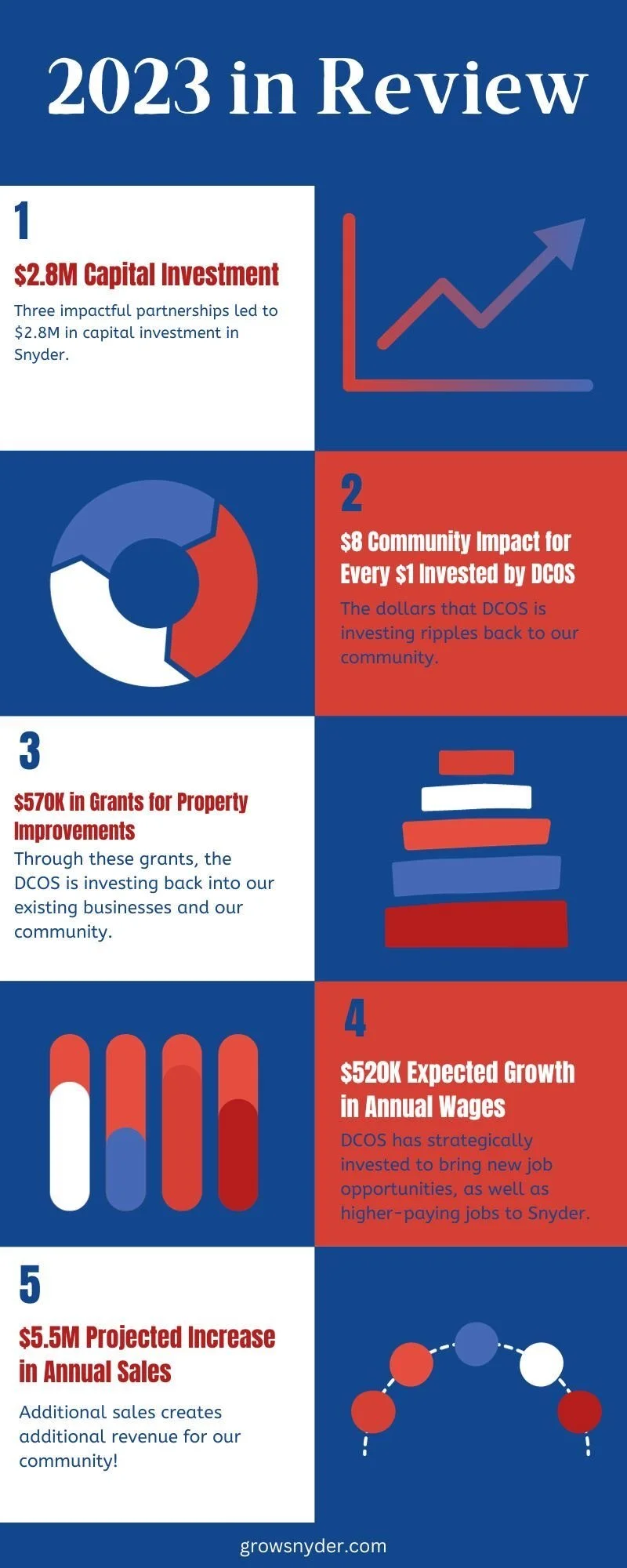 Blog Mark Kitchens 2/28/24 Blog Mark Kitchens 2/28/24 Leveraging Texas Incentives for Business Growth in Snyder Read More Blog Mark Kitchens 2/6/24 Blog Mark Kitchens 2/6/24 The Vital Role of Education in Fueling West Texas Growth Read More Blog Mark Kitchens 1/18/24 Blog Mark Kitchens 1/18/24 Ensuring a Skilled Workforce: Snyder’s Robust Training Options Position Companies for Success Read More Blog Mark Kitchens 1/3/24 Blog Mark Kitchens 1/3/24 Recap 2023: Celebrating Milestones and Impactful Partnerships Read More Blog Mark Kitchens 12/11/23 Blog Mark Kitchens 12/11/23 Snyder, Texas - A Hidden Gem for Commercial Real Estate Investors Read More Blog Mark Kitchens 11/30/23 Blog Mark Kitchens 11/30/23 Thinking of Relocating Your Business? Consider West Texas Read More Blog Mark Kitchens 11/27/23 Blog Mark Kitchens 11/27/23 Consider West Texas for Your Next Manufacturing Business Venture Read More Blog Mark Kitchens 10/23/23 Blog Mark Kitchens 10/23/23 Untapped Potential: Available Land for Growth in West Texas Read More Blog Mark Kitchens 10/16/23 Blog Mark Kitchens 10/16/23 Smaller Towns, Big Opportunities: Tips for Bringing Your Business to West Texas Read More Blog Mark Kitchens 10/5/23 Blog Mark Kitchens 10/5/23 Why West Texas is the Right Move for Manufacturing Read More Blog Mark Kitchens 9/6/23 Blog Mark Kitchens 9/6/23 The Benefits of Purchasing Commercial Land in West Texas Read More Blog Mark Kitchens 8/10/23 Blog Mark Kitchens 8/10/23 How DCOS is Cultivating Snyder’s Future Economic Growth and Workforce Read More Blog Mark Kitchens 4/3/23 Blog Mark Kitchens 4/3/23 DCOS Helps Promote Snyder ISD Welding Event Read More Blog Mark Kitchens 10/27/22 Blog Mark Kitchens 10/27/22 The DCOS is a Vital Asset to Snyder, Texas Read More Blog Mark Kitchens 10/16/22 Blog Mark Kitchens 10/16/22 How Voter-Approved Additional Authority For the DCOS Would Benefit Local Businesses Read More Blog Mark Kitchens 6/30/22 Blog Mark Kitchens 6/30/22 Texas: the Bitcoin mining capital of the U.S. Read More Blog Mark Kitchens 6/23/22 Blog Mark Kitchens 6/23/22 Workforce Development Opportunities in Snyder Read More Blog Mark Kitchens 5/27/22 Blog Mark Kitchens 5/27/22 3 Commercial Properties Available Now in Snyder, Texas Read More Blog Mark Kitchens 5/4/22 Blog Mark Kitchens 5/4/22 5 Reasons Businesses Are Choosing West Texas Read More Blog Mark Kitchens 11/12/21 Blog Mark Kitchens 11/12/21 How Multi-Million Dollar Industrial Businesses Like WL Plastics Can Thrive in West Texas Read More Newer Posts Older Posts